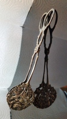 מלקחיים עתיקים לעוגה או לפשטידה עשויים כסף חתומים מעוטרים עיטורי פרחים מדהים ביופיו