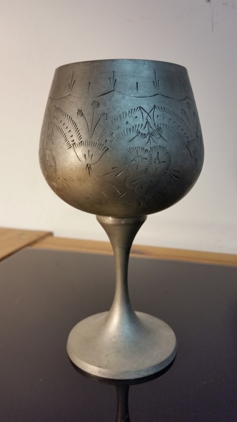 גביע קידוש עתיק מעוטר בציורי פרחים בציפוי כסף