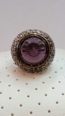 טבעת ויקטוריאנית מכסף חתומה 925 משובצת באבן חן סגולה ומסביבה אבני זירקוניה מרשימה ביופייה במחיר מבצע