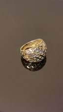 טבעת עשויה זהב צהוב חתומה 14 קראט בשילוב זהב לבן בעיצוב תחרה עדינה ויפה