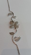 סט עדין תחרה שרשרת וצמיד בזהב לבן 14 קראט מיוחד וקלאסי מעוטר בעיטורי פרחים לכלות ובעלות טעם משובח מדהים ביופיו משקל שרשרת 6.6 גרם משקל צמיד 2.3 גרם